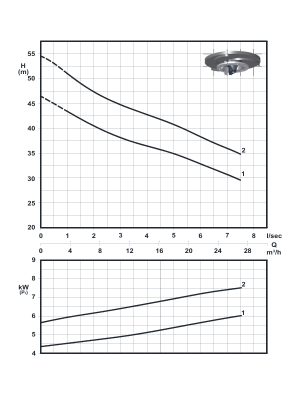 - Maximale Kapazität: 6,5 l/s - 450 l/min. - ~ 27 m3/h