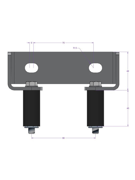 WP-L80 Führungshalterung, hat einen Abstand von 80 mm für typische Rohrführungen Ø26,9x2 mm.