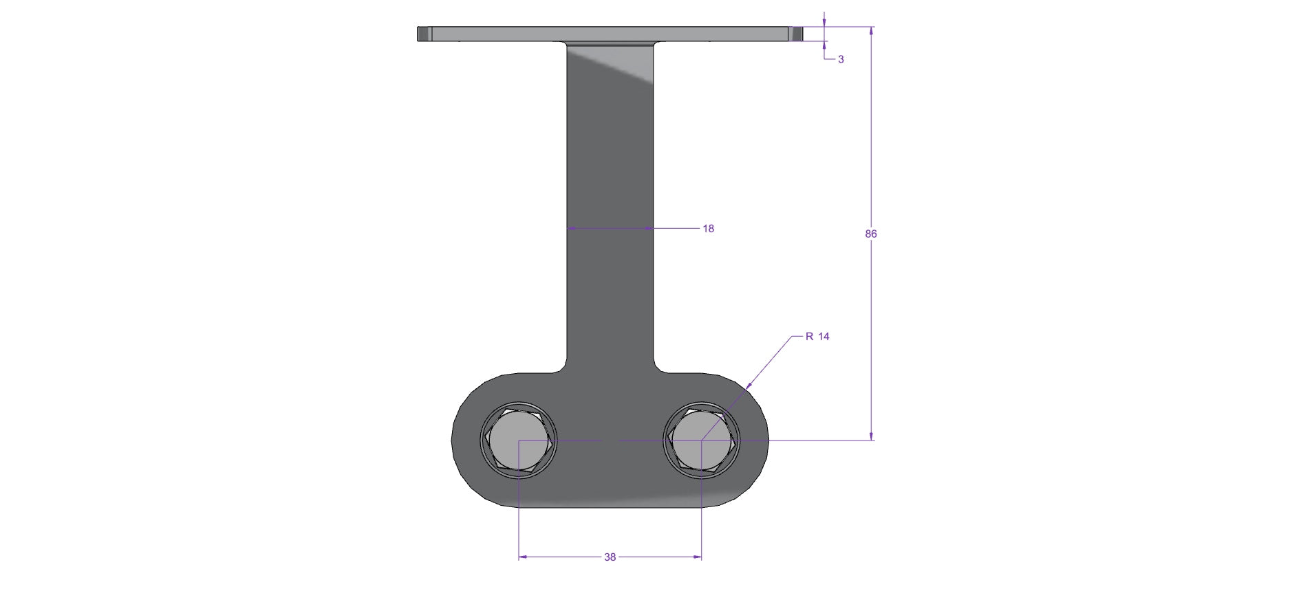 Führungsträger WP_CAL50, hat einen Abstand von 38 mm für typische Rohrführungen Ø26,9x2 mm und Versatz von der Tankwand 86mm (entsprechend der CALPEDA-Pumpenkupplung).