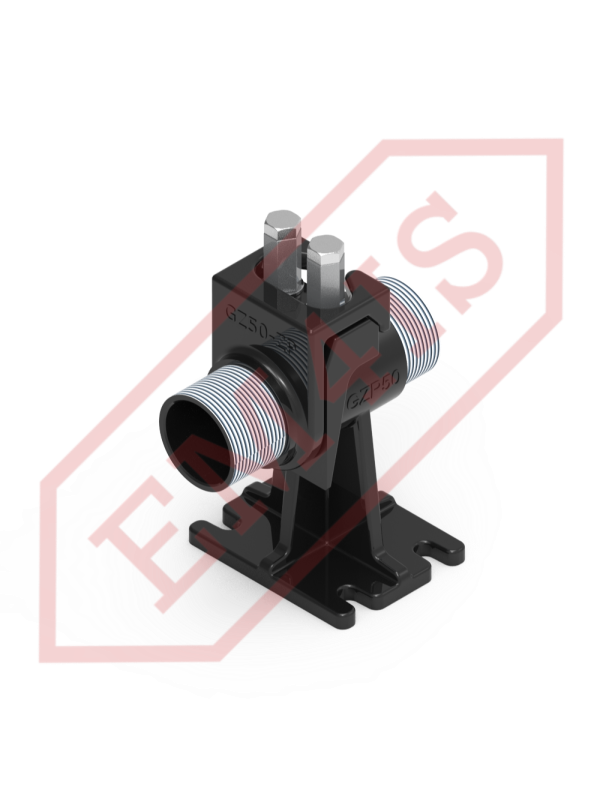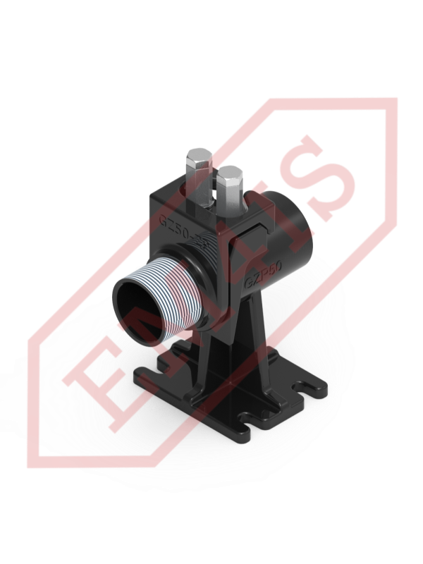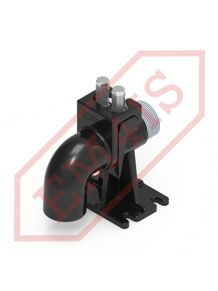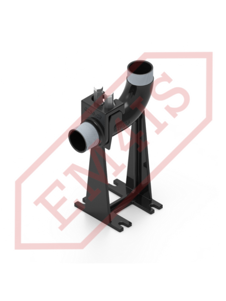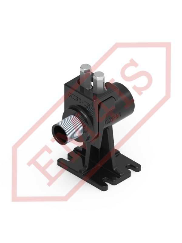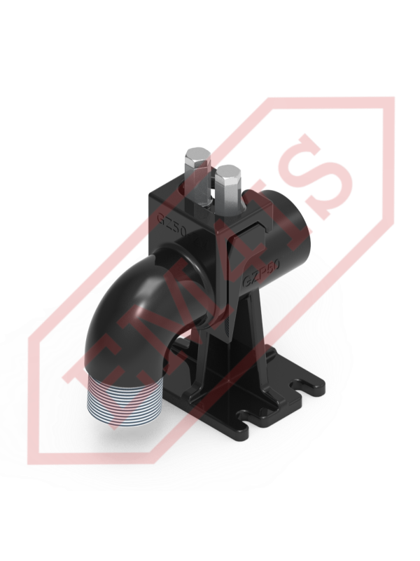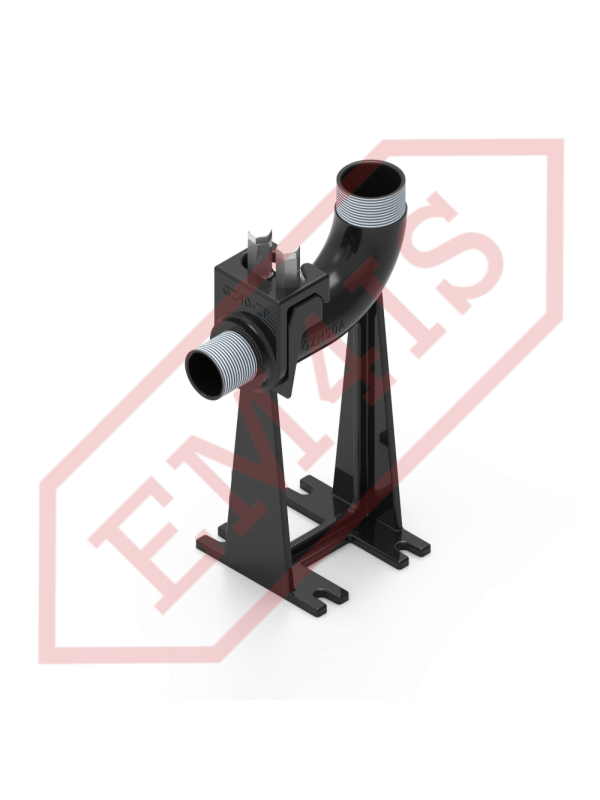 Ein Kupplungsfuß, oft auch Kupplungswinkel genannt, für den fachgerechten Einbau von Tauchpumpen in Pumpstationen. Dank des Kupplungsfußes wird die Pumpe mit der verschraubten Kupplung auf den Tankboden abgesenkt oder entlang zweier Rohrführungen herausgezogen, ohne dass ein Einstieg in den Tank erforderlich ist. Selbst bei einer vollständig überfluteten Pumpstation, bei der der Boden nicht sichtbar ist, liegt die Pumpe immer noch präzise auf dem Fuß auf und rastet ein. Die O-Ring-Dichtung zwischen der Kupplung und dem Fuß sorgt für eine effektive Haftung der Flächen und eine dichte Verbindung und minimiert so Druckverluste und Pumpeneffizienz.
