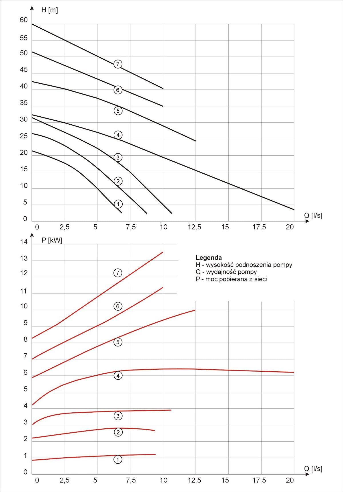 - Maximaler Wirkungsgrad Qmax = 10,5 l/s / 630 l/min / 37,8 m3/h,