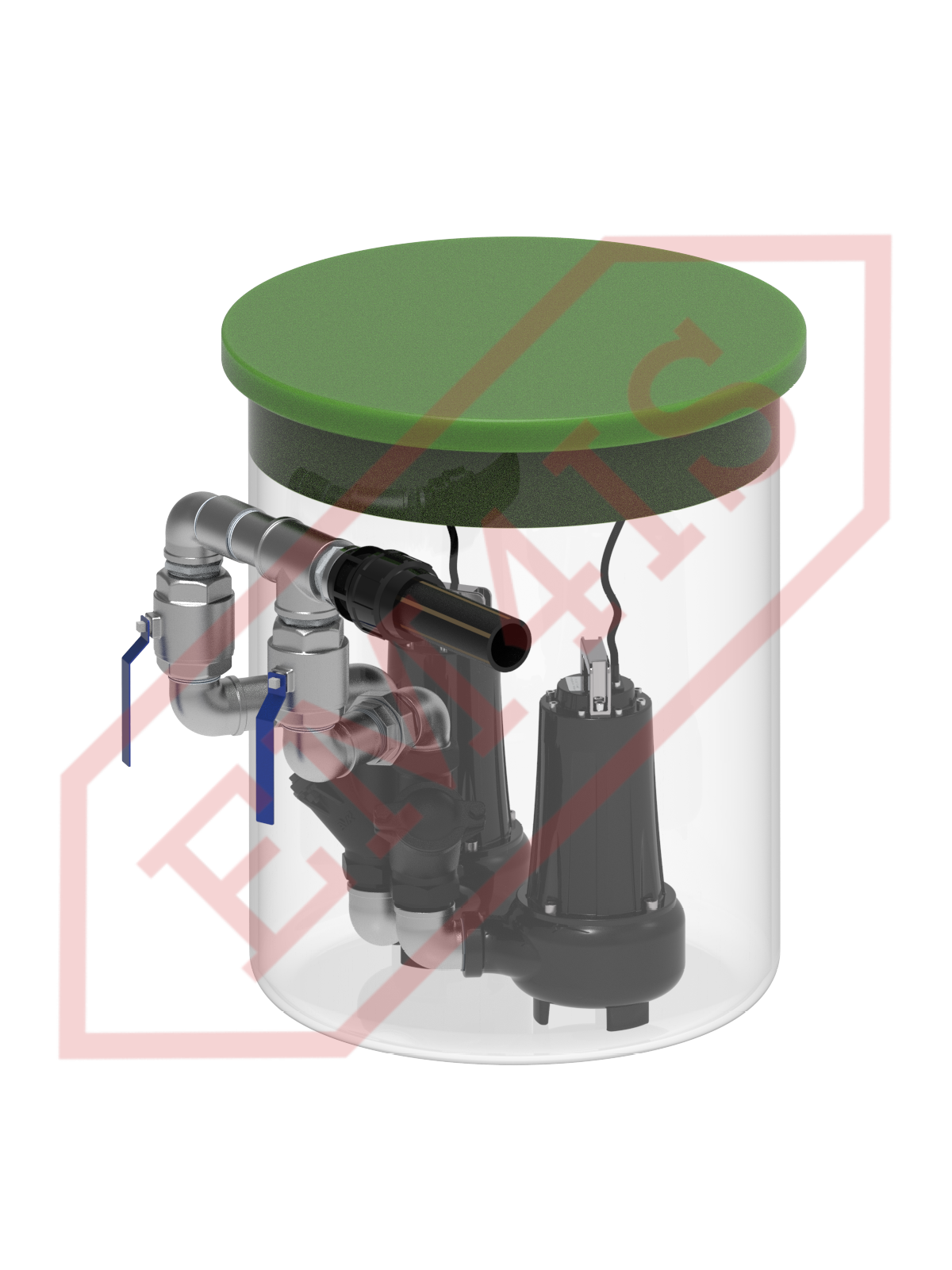 - Die Pumpstation kann zum Pumpen mit Fäkalien, leichten Nähen (Dusche, Waschmaschine, Waschbecken) oder zum Pumpen von Regenwasser verwendet werden. Es hängt alles von der ausgewählten Art von Pumpen und der Steuerung ab.