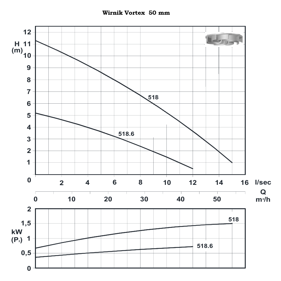 - Maximale Kapazität: 15 l/s - 900 l/min. - ~ 54 m3/h