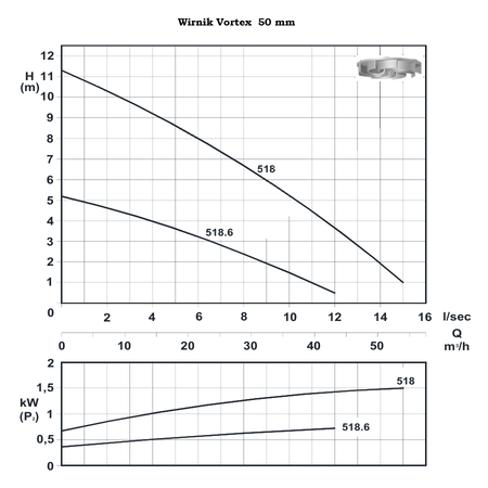 TL 518 - Effiziente DN50 -Abwasserpumpe mit Wirbel Wirbelrotor 1,5 kW/230 V -400 V - 1450 U/min