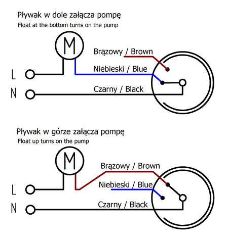 Der Schwimmer ist für die Arbeit mit Spannung von bis zu 230 V und einem maximalen Strom von 6 A. gedacht.