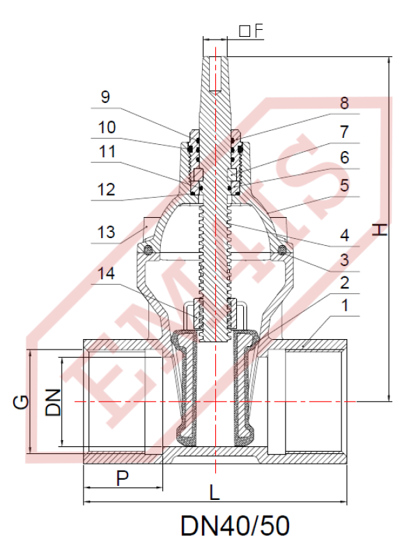 ZKO-G Marken 3XAL dies Gummierter Keilschieber mit Gewinde für Abwasser und Schmutzwasser. Der beste Abwasserschiebertyp, da er dank der gummierten EPDM-Absperrklappe wirksam den Abfluss von Abwasser und Schmutzwasser verhindert.